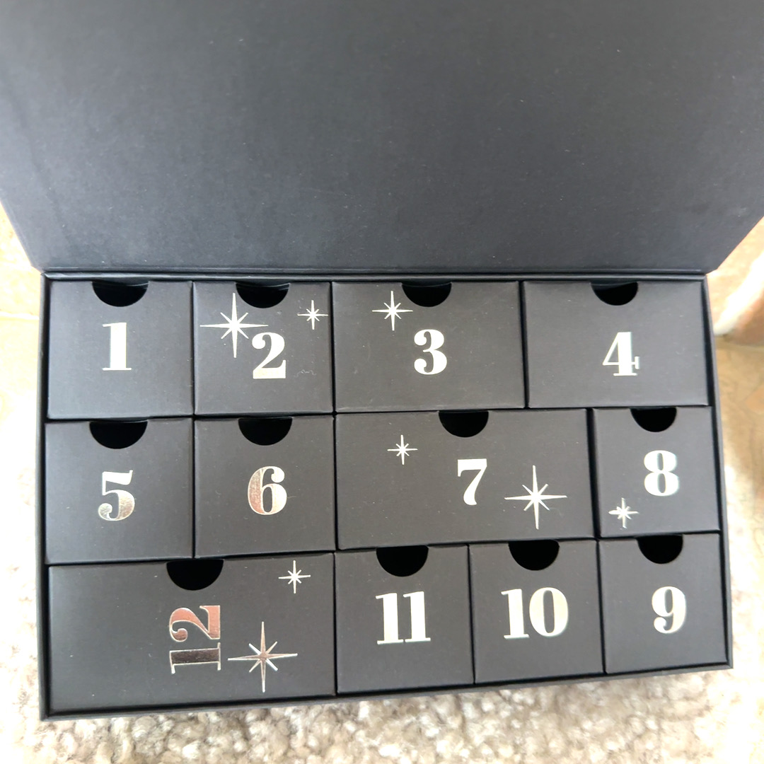 Das elegante Schwarz-Silber-Design verleiht dem Kalender einen exklusiven Look – schlicht, edel und zeitlos. Ideal für die Adventszeit, als besonderes Highlight rund um Weihnachten.