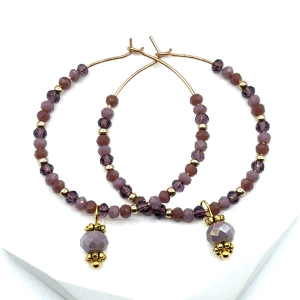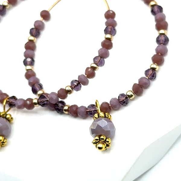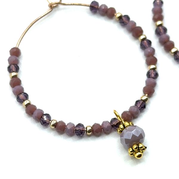 Ein zartes Farbenspiel aus violetten und roséfarbenen Facettperlen, veredelt mit goldenen Akzenten. Diese Creolen vereinen Leichtigkeit und Eleganz – ein modernes Statement, das jedem Look einen besonderen Hauch von Stil verleiht.