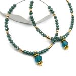 Funkelnde Facettperlen in edlem Petrolblau, kombiniert mit goldenen Akzenten und einem feinen Anhänger. Ein moderner Blickfang mit eleganter Note. ✨