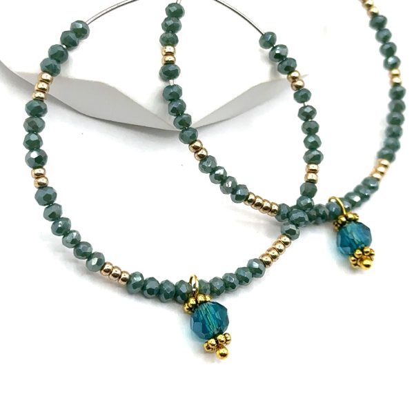 Fein gearbeitete Creolen mit funkelnden, petrolblauen Facettperlen, edel akzentuiert durch goldene Zwischenelemente. Ein besonderes Highlight sind die zart schwingenden Anhänger in glänzendem, tiefem Blau – ein eleganter Farbakzent, der jedem Outfit Raffinesse verleiht.