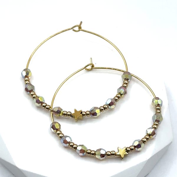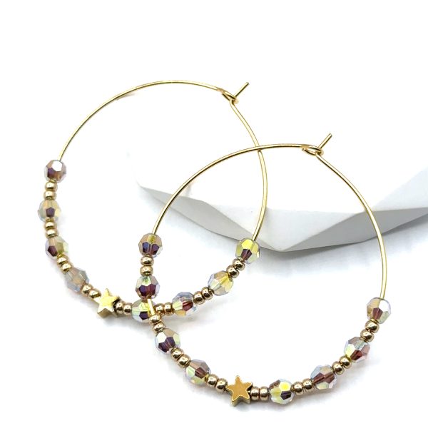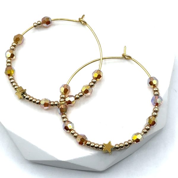 Funkelnde Swarovski Kristallperlen in hellem Orange, veredelt mit goldenen Details und Sternmotiv.