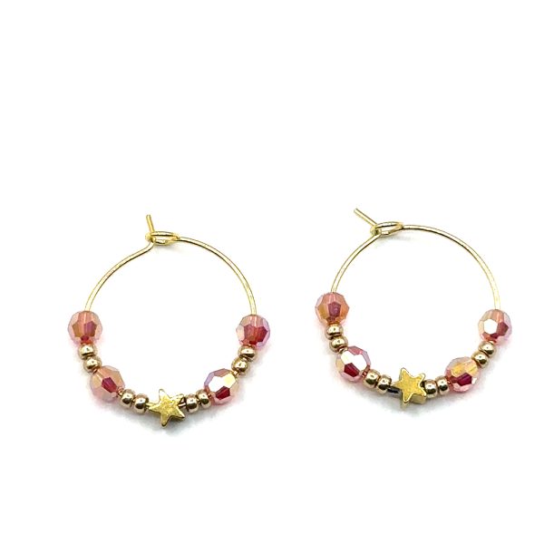 Feine Creolen mit facettierten Swarovski Kristallperlen in Rosé und goldenen Stern-Details. Ein dezenter Hauch festlicher Eleganz. ✨