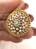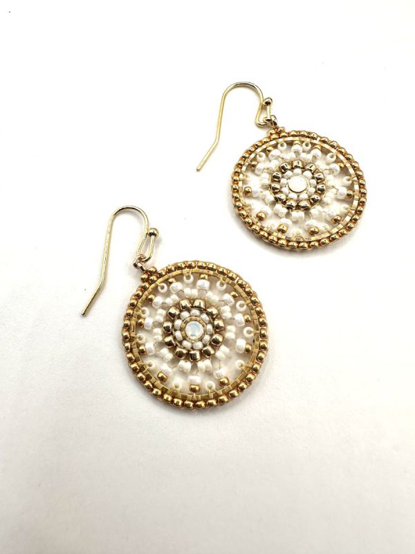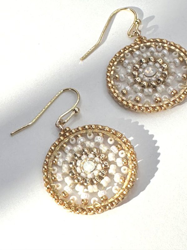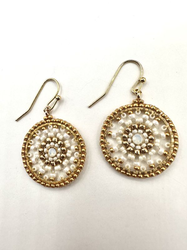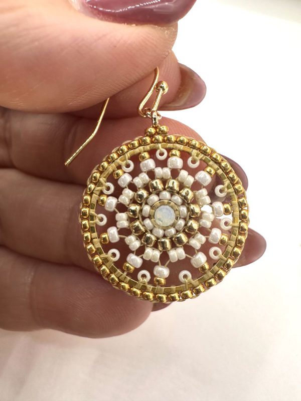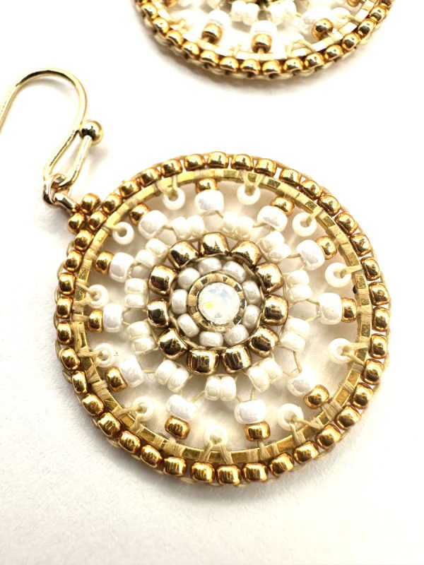Wie ein kleines Schmuckmandala schimmern weiße und goldene Glasperlen rund um einen sanft funkelnden Kristall. Gefertigt aus vergoldetem 925 Sterling Silber, leicht und angenehm zu tragen, begleitet dieser Ohrhänger dich stilvoll zu Hochzeit, Taufe, Geburtstagsfeier oder verleiht dem Alltag einen Hauch festlicher Leichtigkeit.